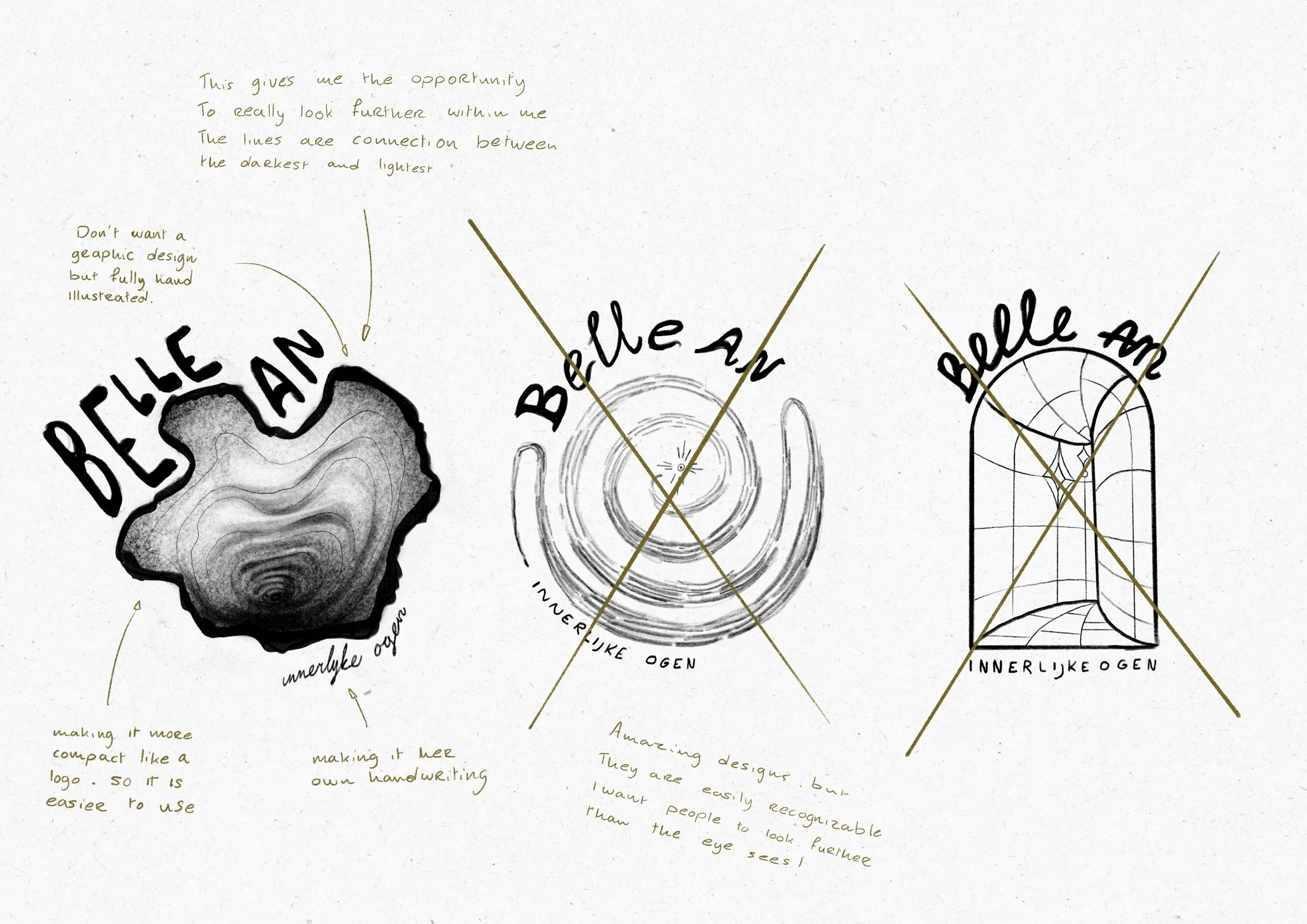 For BelleAn (Annebelle), I designed a sticker to support her sponsorship of the Moestuin at Kasteel de Haar, while reflecting on her intuitive and spiritual painting practice. Together, we explored different directions and, after initial sketches, chose an unexpected shape, one that reveals more meaning the longer you look at it and the more open you are to interpretation.