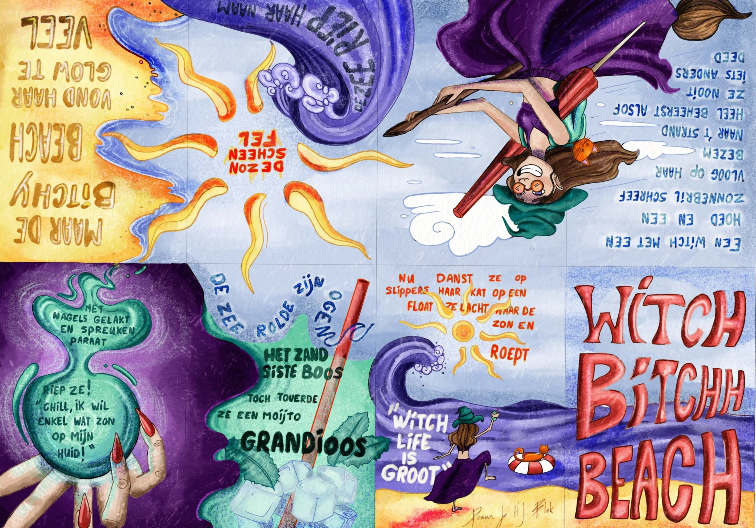 In a way, I am that witch, observing and experiencing everything around me, then translating it into a lighthearted, slightly chaotic, and not-too-serious tone. I design each zine as a flowing whole across pages, focusing not just on individual spreads, but on the rhythm and energy of the entire composition.
