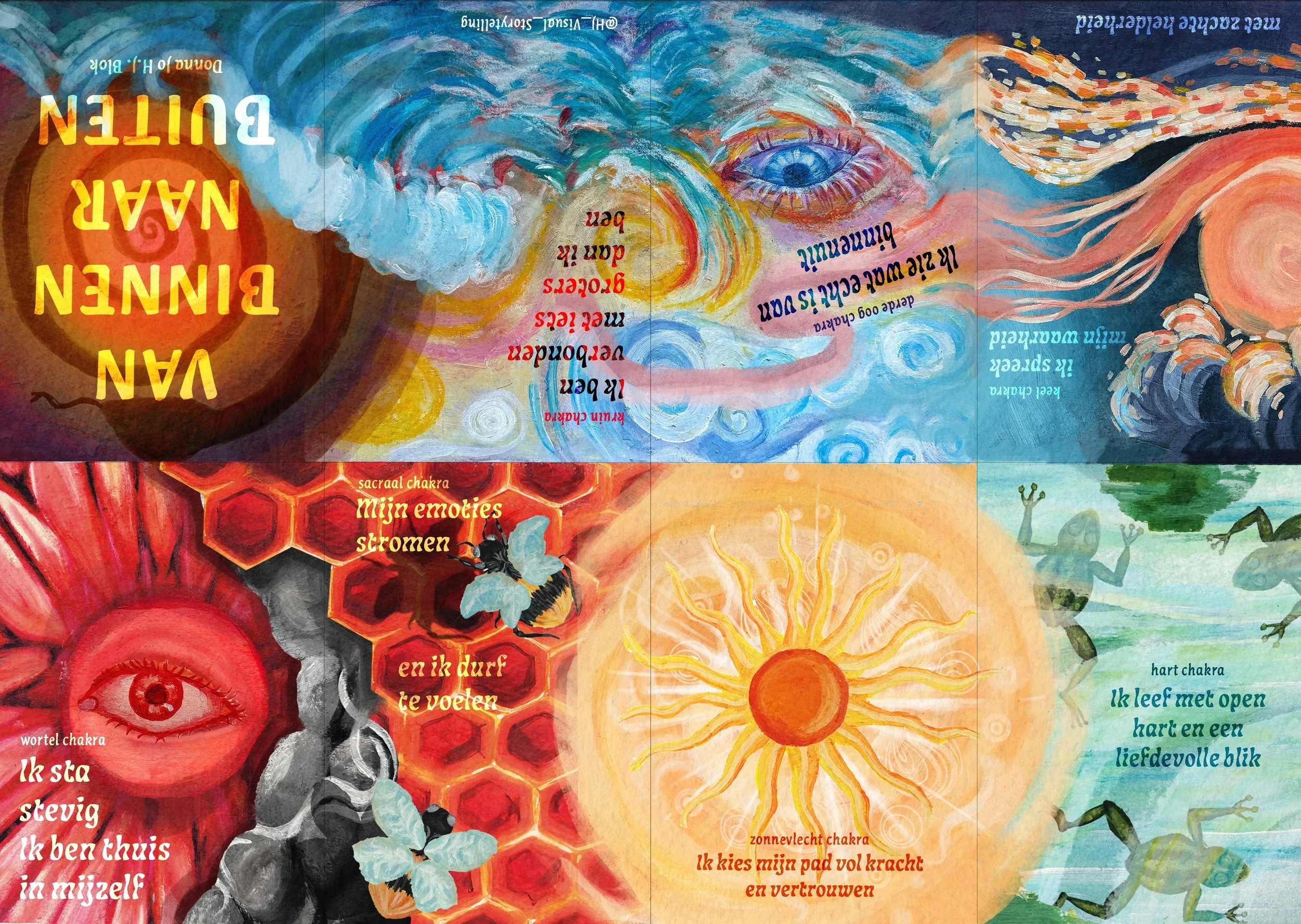 Afterwards, each participant received a tangible keepsake of the artwork, translated into a still composition where layout, color, and form flowed seamlessly together. Accompanied by a short poem about the chakras, this allowed them to gain a deeper understanding of the experience and reflect on it in their own way.